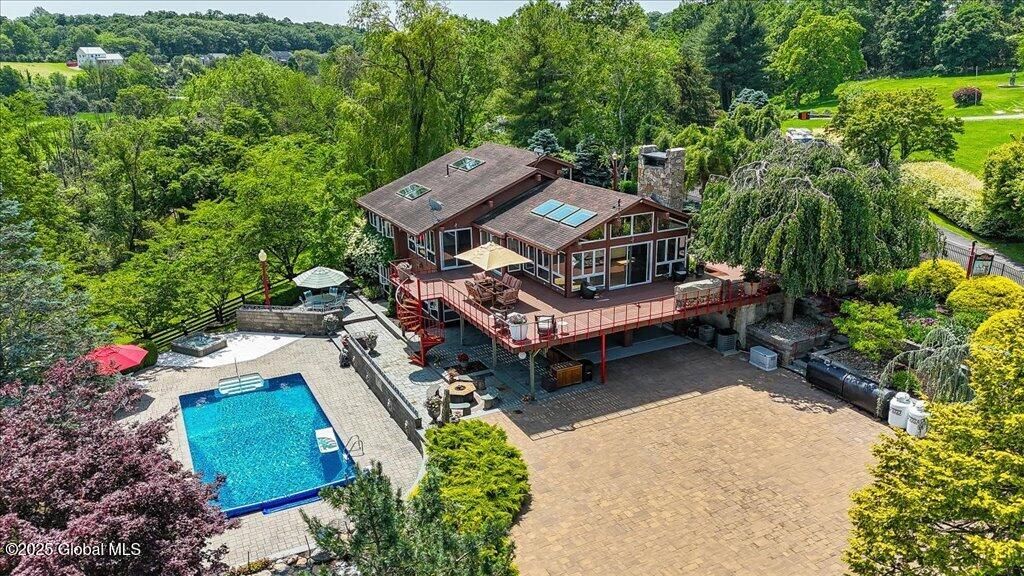 Sprawling 88.3-acre equestrian estate nestled in peaceful countryside surroundings. The main residence is a contemporary ranch featuring vaulted ceilings, rustic beams, expansive windows offering sweeping views, and wood burning fireplace. The interior features an open concept layout with hardwood flooring. Kitchen, equipped with granite countertops, high-end appliances such as a Thermador cooktop, Miele ovens with warmer, Bosch dishwasher, Samsung Refrigerator with built-in soda stream. Primary suite, located on the main floor, offers a bathroom with dual vanities, dual toilets, bidets, and generous closet space. In the center, a sunken jacuzzi tub and large shower with custom tile. Laundry chute to the lower-level laundry room adds convenience. The lower level offers two bedrooms, full bath with ample closet space, laundry, office, and 2 car garage. Resort-like amenities including heated in-ground, salt-water pool, hot tub, outdoor kitchen, fire table with seating, authentic caboose pool house with full bath. Koi ponds, fountains, beautiful foliage with watering system adorn the terraces and decks. The second home, also contemporary with open floor plan, vaulted ceilings, large windows. The lower level offers a kitchen with breakfast bar, stainless steel appliances, pantry, living room, dining room, and a half bath. Loft style bedroom accessed by spiral staircase, full bathroom, dual vanity, custom tile shower, toilet with bidet/warmer, and large walk-in closet. Over-sized four car garage with additional storage. Each residence has central air conditioning, backup generators. The equestrian facilities offer two stables with a total of 14 stalls each with automatic watering system. Outdoor, lighted riding arena with sand footing. An abundance of pasture also with automatic watering system, multiple paddocks. Training jumps included. Be sure to check out the NYS tax exemption information for farms and horse boarding businesses.